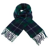 CLANS OF SCOTLAND Cashmere Clan Tartan Scarf. Timeless and luxurious, this beautifully crafted tartan scarf is made from pure cashmere. The use of finest cashmere makes it an exquisite garment with an extra-soft finish. The packaging includes a clan history and motto at the back. This scarf is a fantastic souvenir from Scotland either for yourself or your beloved ones.