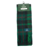 CLANS OF SCOTLAND Lambswool Clan Tartan Scarf. Timeless and traditional, this beautifully crafted tartan scarf is made from pure lambswool. The use of finest material makes it an exquisite garment with an extra-soft finish. The packaging includes a clan history and motto at the back. This scarf is a fantastic souvenir from Scotland either for yourself or your beloved ones.